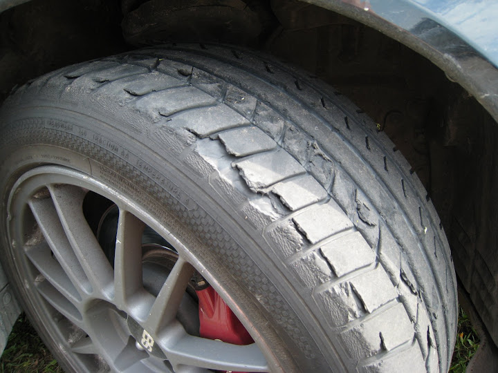 Uus STI vs EVO + palju juttu, kui hea Mazda3 MPS onVot mul tulid samamoodi paar suurt tükki lahti slikkide küljest Saugal, tõsi, mitte küll nii suures ulatuses nagu sellel pildil oleval rehvil. Kas tegu võib olla vale rõhuga või ongi see Saugal normaalne?