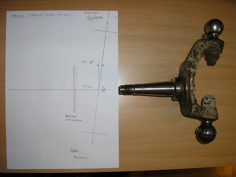 Vedrustuse geomeetria on tuumafüüsika! Lõpuks ma valisin esisilla geomeetria. Kasutasin selleks http://www.racingaspirations.com/?p=286. Suhtun ettevaatlikult igasse interneti kalkulaatorisse, aga see küll klappis igati paberil joonistatuga. Kahjuks on puudu raami kinnituspunktide nurk (mõõtsin lihtsalt malliga).